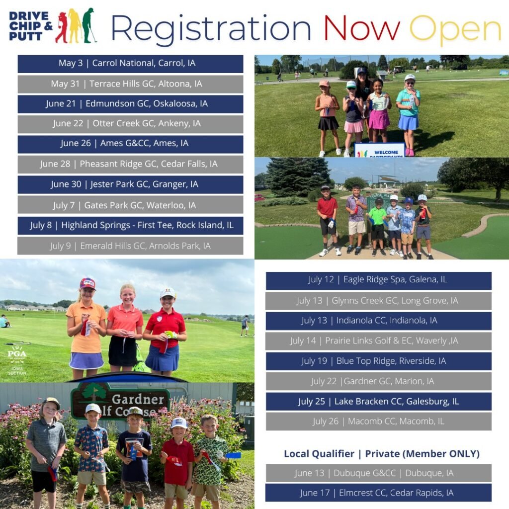 #image_title Post author:Talk Golf Ireland Post published:27 January 2026 Post category:Talk Golf USA Registration is LIVE for Drive, Chip & Putt Thanks to all the facilities below that are hosting a 2026 DCP Local Qualifier!!!Sign up for a local qualifier near you athttps://www.iowapgajuniorgolf.com/drive-chip-and-putt…/ Talk Golf Ireland bio See Full Bio Talk Golf Ireland bio You Might Also Like Heritage Golf Group Completes Four-Club Acquisition 6 January 2026 Colonial Country Club Ft Myers reopens 27 January 2026 Women’s Championship & Clinic 25 January 2026